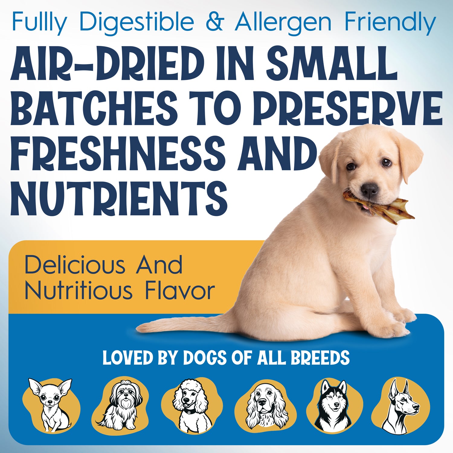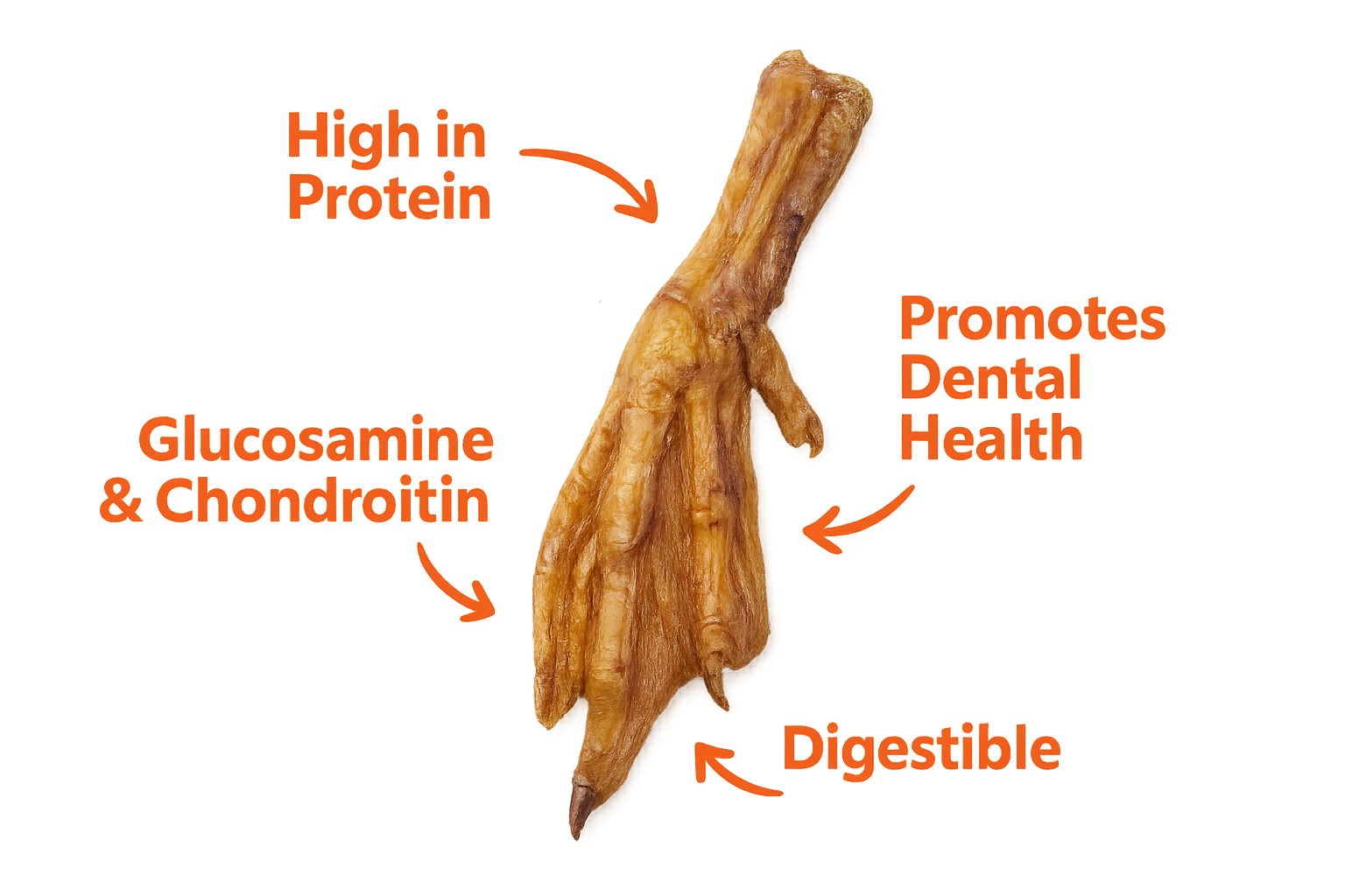 Give your pup something to quack about! Our all-natural Duck Feet Dog Chews are made from high-quality, farm-raised ducks, these single-ingredient chews are packed with protein and naturally rich in glucosamine and chondroitin to support healthy joints. Their satisfying crunch helps clean teeth and freshen breath while keeping dogs happily occupied. Because they’re grain-free and hypoallergenic, they’re also a great option for pups with sensitivities to common proteins like chicken or beef. Tasty, wholesome, and delightfully crunchy, duck feet are truly a feet of flavor your dog won’t want to miss.